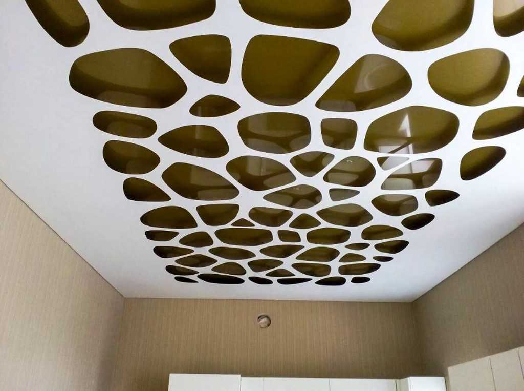 Высший полет дизайнерской мысли — резные потолки, для изготовления которых используется комбинация из нескольких уровней, нижний из которых имеет декоративные вырезы. Получается эффектное объемное изображение, которое притягивает взгляд.