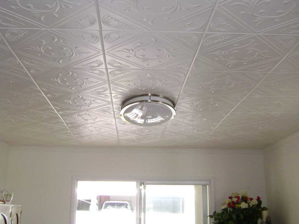 Вероятно, еще дешевле, чем побелка, обойдется оклейка поверхности пластиковыми плитками. Они немного различаются по материалу, рисунку и форме, но суть одна — легкая пластина правильной формы из тонкого пластика. Сажается на специальный клей.