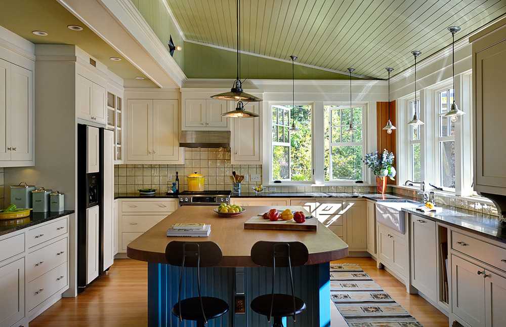 При обустройстве кухни вам необходимо позаботиться о всех поверхностях помещения. Это важная часть комнаты, которая отвечает за оптический прием интерьера кухни. Есть много идей для потолка на кухне, он может быть гладким и белым или иметь структуру, форму и цвет. Кухни используют подвесные и натяжные потолки, потолочные островки или наклеивают фотообои на самую высокую поверхность.