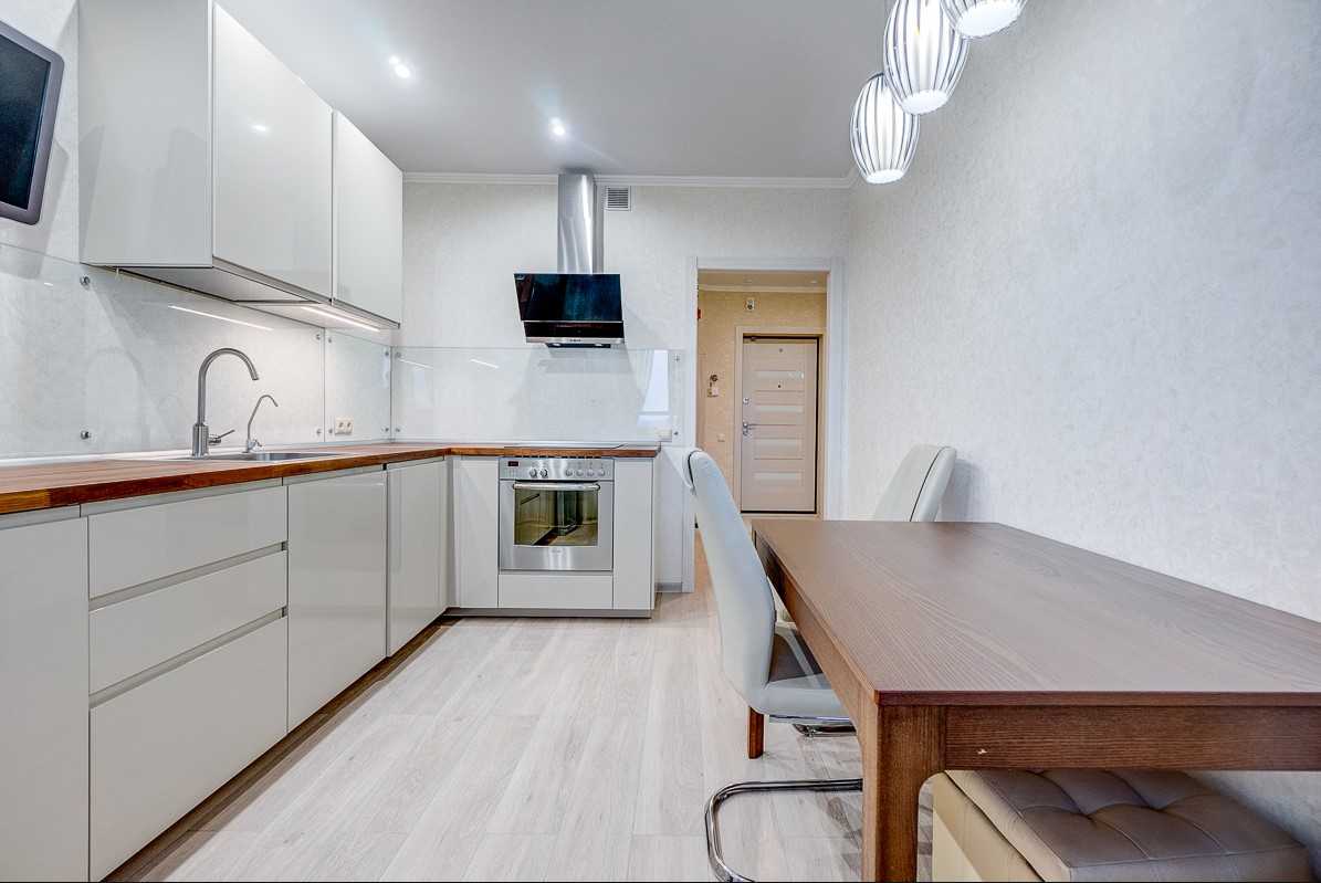 Однако на облицовочных материалах кухни оседает пищевая взвесь от приготовления пищи, глянец теряет свой лоск. Здесь возможны 3 варианта – мощная вытяжка, редкое приготовление блюд, частая смена покрытия.