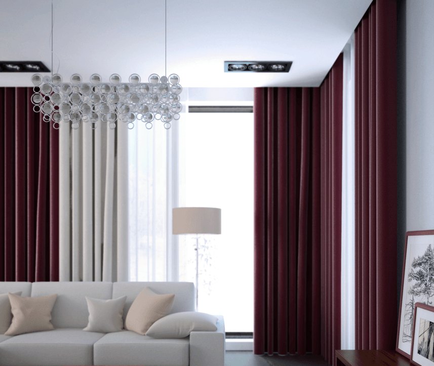 Зачастую желание спрятать карниз возникает у обладателей натяжных потолков, когда не хочется, чтобы вместо гладкого покрытия и лоснящейся ткани взгляд цеплялся за металлическую трубу над окном. При этом в хорошо продуманном интерьере на первый взгляд остается неясным, как крепятся ниспадающие с потолка шторы.