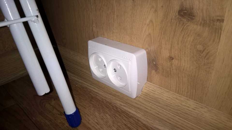В плинтус врезана обычная накладная розетка |