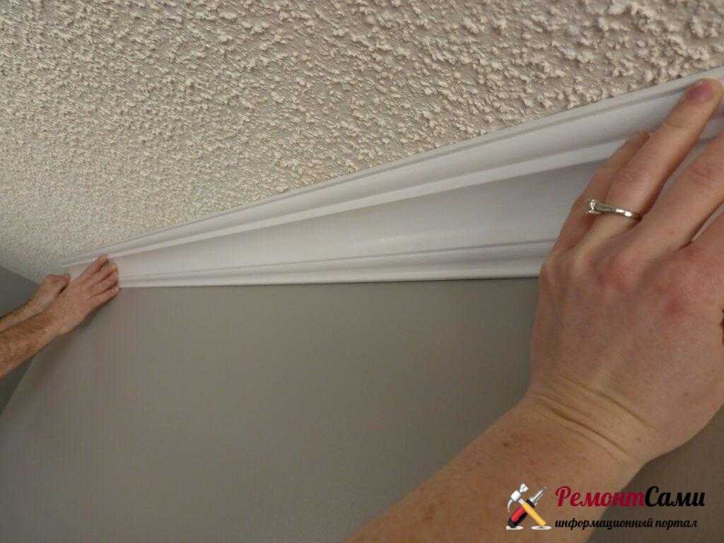 Прежде всего рассмотрим, как приклеить потолочный плинтус на обои, так как этот вопрос интересует домашних мастеров чаще всего.