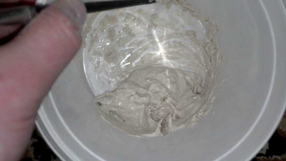 - Содержимое перемешивается, а в него подливается вода. Раствор готовится до тех пор, пока консистенция не будет напоминать сметану.