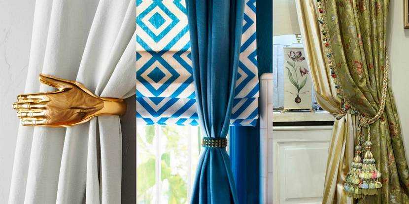 Средиземноморский. В комнате с намеком на морскую тематику уместно смотрятся плетеные фиксаторы, напоминающие канаты. Их можно дополнительно декорировать ракушками, морскими звездами, хрустальными и акриловыми бусинами, или декоративными безделушками в виде якорей.