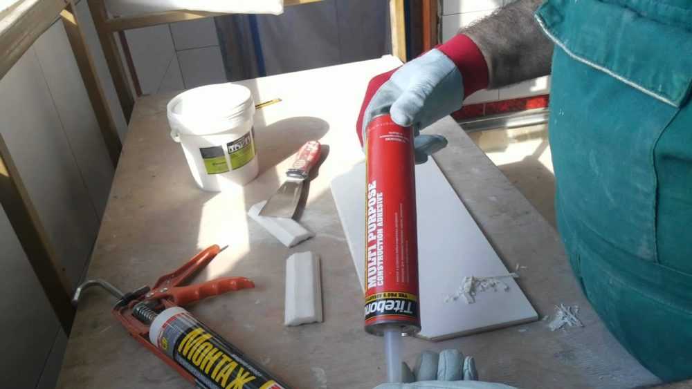 Совет: Чем лучше клеить? Выбирайте для установки полимерно-спиртовой клей. Он быстро схватывается, обладает высокой адгезией, водонепроницаем.