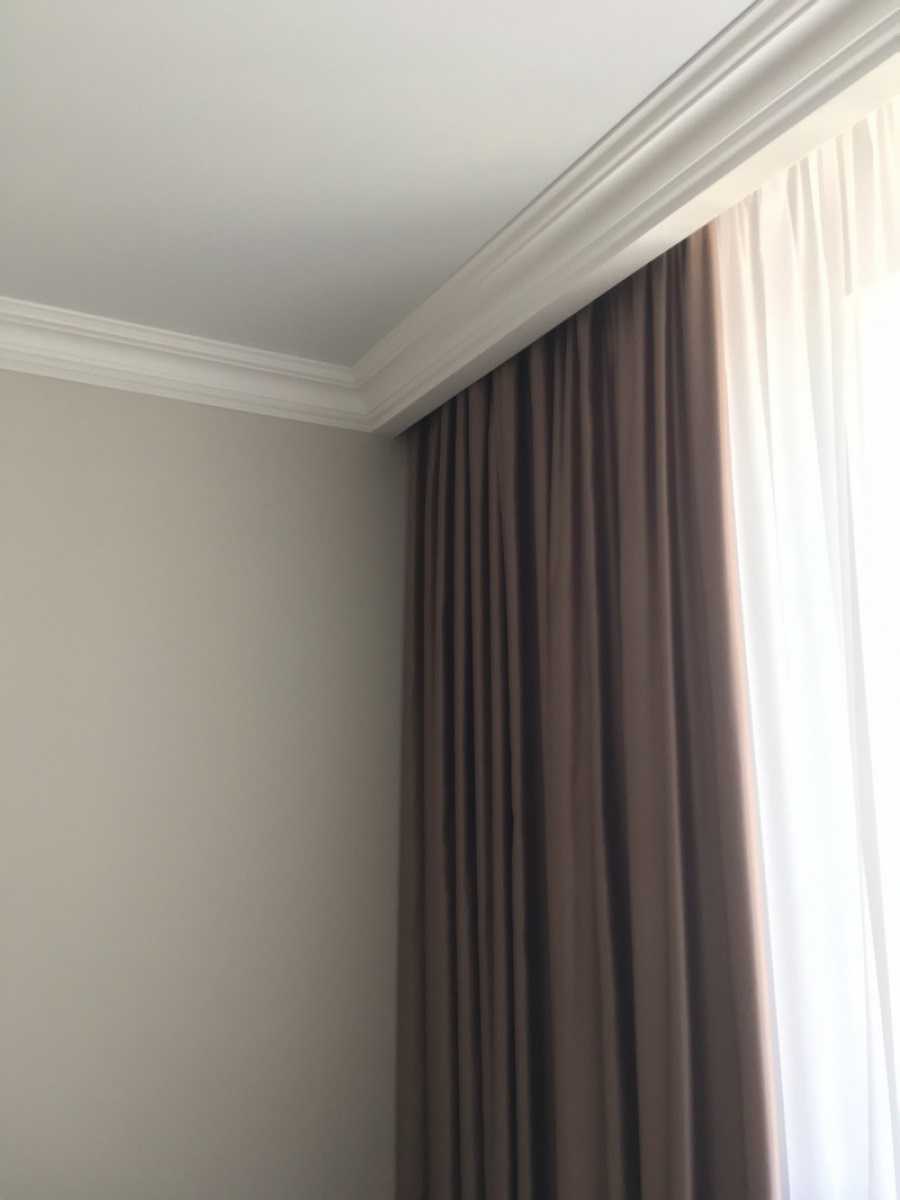 Определяясь с решением, как оформить карниз для штор при помощи потолочного плинтуса, необходимо уделить время выбору самого плинтуса – он может быть разной ширины, материала, решать дополнительные задачи дизайна – например, прятать в нише подсветку или провода.