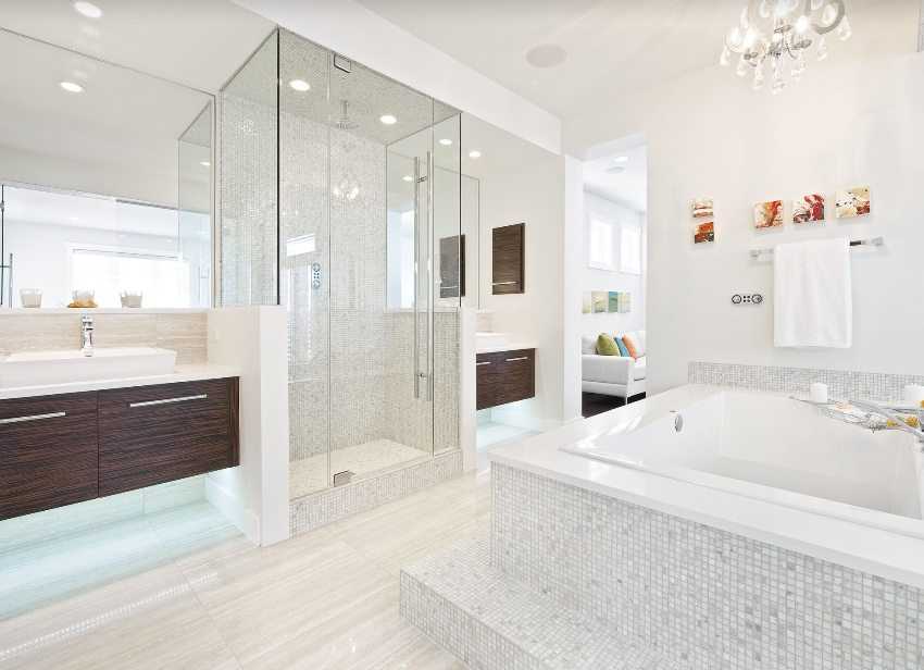 Так же дизайнеры не советуют в ванных комнатах маленькой площади применять освещение теплых тонов.