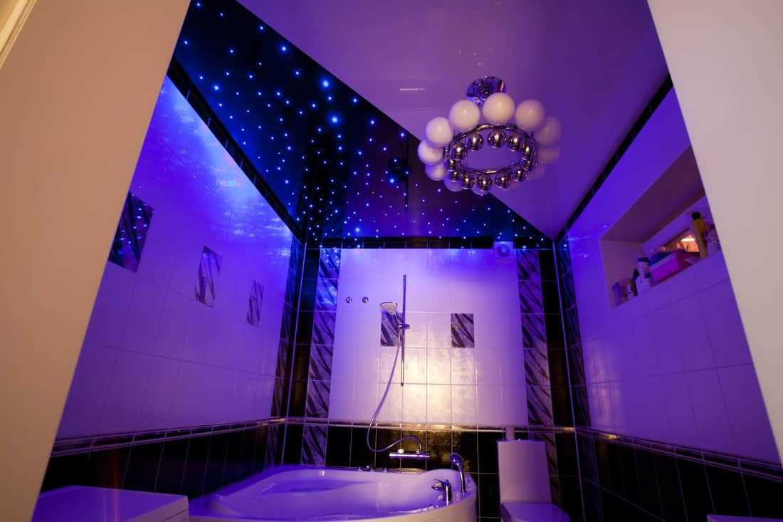 Применение натяжных потолков в ванной поможет вам воплотить самую необычную идею.