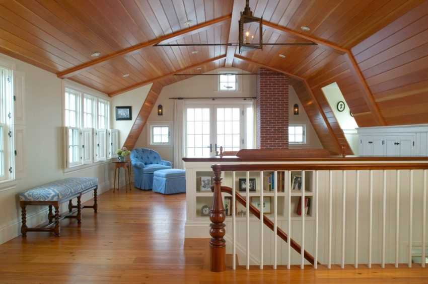 Замечательно выглядит мансарда с ламинатом на стене в интерьере. Фото, отделанных этим материалом мансардных этажей, указывают на то, что дизайнеры предпочитают крепить панели в этих просторных помещениях не только на стены, но и на скошенные потолки, причем в различных направлениях. Для отделки дачного домика ламинат подходит как нельзя лучше. Ведь его древесная фактура подчеркивает близость к природе и создает атмосферу теплоты и уюта в этом загородном островке комфорта.