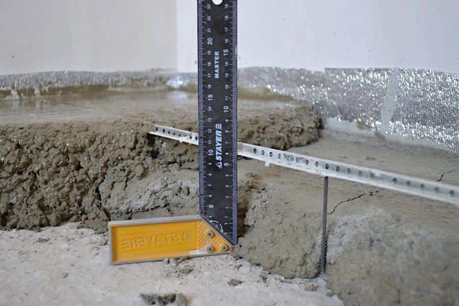 Верхняя грань маяка должна находиться на одной высоте с черновой поверхностью пола