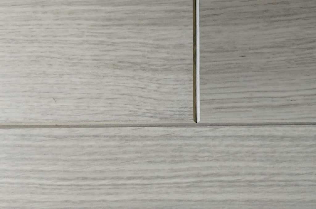 У некоторых брендов ламината туго заходящие торцевые замки и при соединении возможна неполная стыковка панелей. Особенно это касается ламинированных полов китайских фабрик и других марок с обильной смазкой водоотталкивающими составами. Дело в том, что наличие парафина мешает полной состыковки планок. Вроде, по созданному усилию вставил до упора, а оказывается, можно еще. Отсутствие достаточного количества света и темный цвет ламината с фаской может способствовать такому бракодельству.
