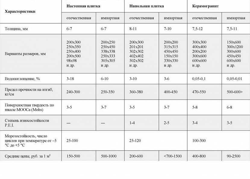 Эксплуатационные характеристики плиткиИсточник opora-stroy.ru