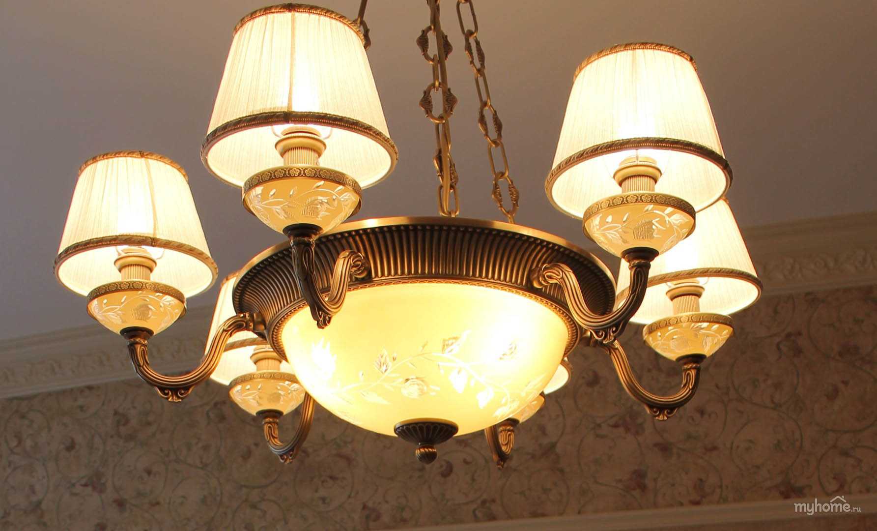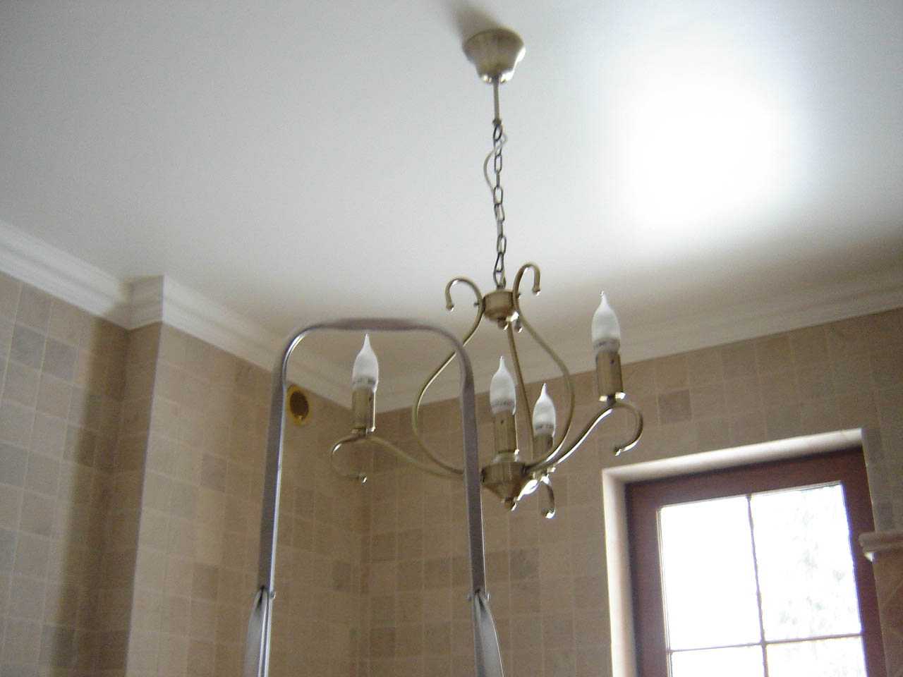 всегда проще всего. Но только если он уже установлен, как это зачастую и бывает в старых многоквартирных домах. В таком случае на нем можно спокойно закрепить тяжелую и массивную люстру.