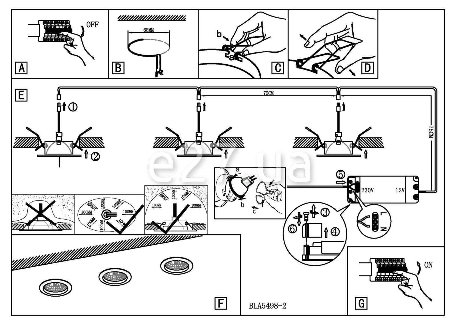 Кабель идет от распределительной коробки и подключается к первому светильнику. Далее нужно взять отрезок другого провода и подключить к выходу прибора, причем другой конец следует соединить со следующим спотом. Повторите действия для всех спотов, пока не будет организовано подключение цепи.