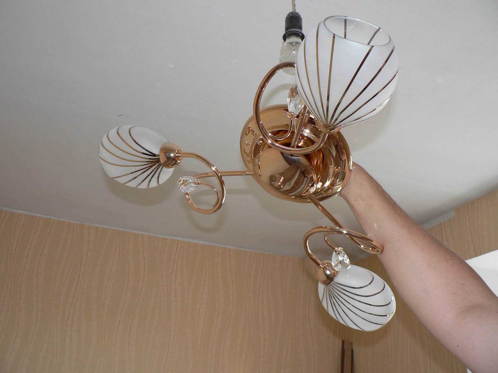 Перед тем, как приступить к процессу, из люстры выкручивают лампочки, а дальше поступают следующим образом: