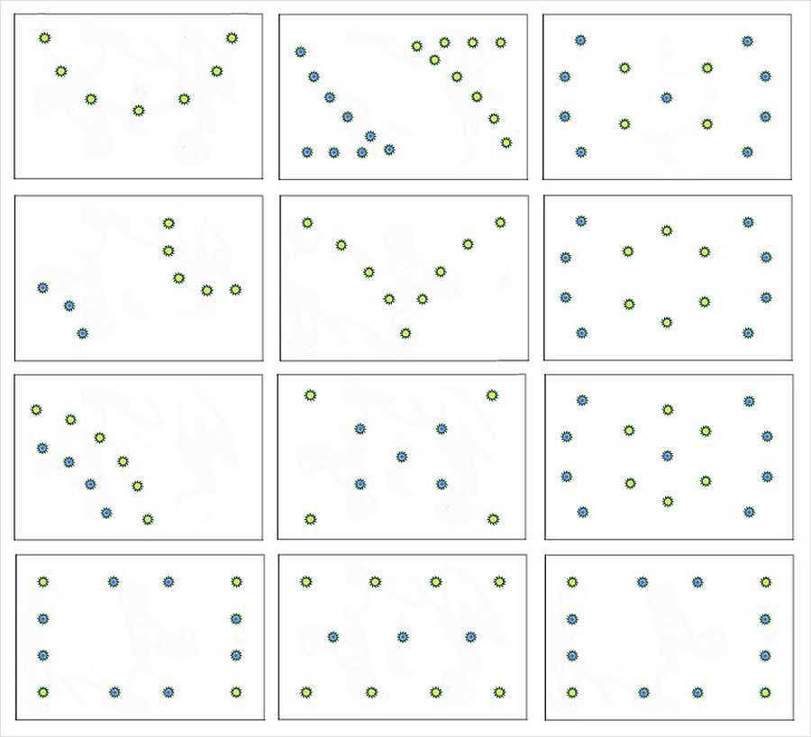 Размещение точечного света по всему периметру комнаты может содержать в себе разные варианты и схемы. С помощью спотов можно создать изображения геометрических фигур, таких как: