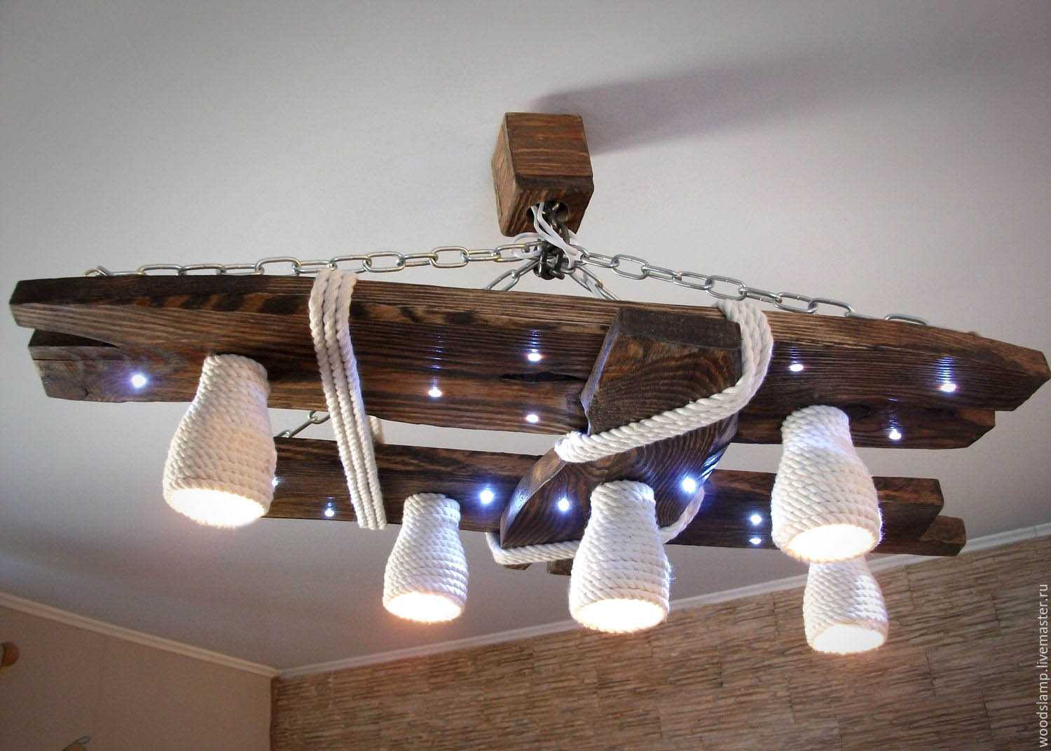Появившийся относительно недавно стиль Шале предполагает использование натуральных материалов во всех деталях интерьера. Светильники не стали исключением. Стоит остановить свой выбор на лампах из стекла, дерева, металла. При этом люстра не должна быть перенасыщена мелкими деталями. Все осветительные приборы должны быть лаконичны.