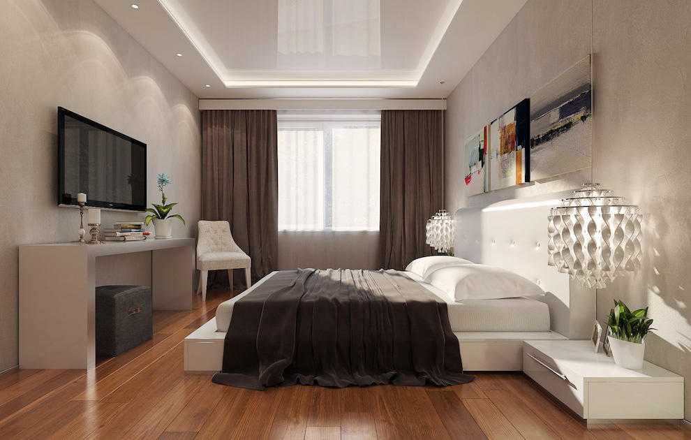 В спальне можно установить не только простой, но и многоуровневый потолок. Такие дизайнерские решения могут преобразить интерьер и сделать его более органичным.