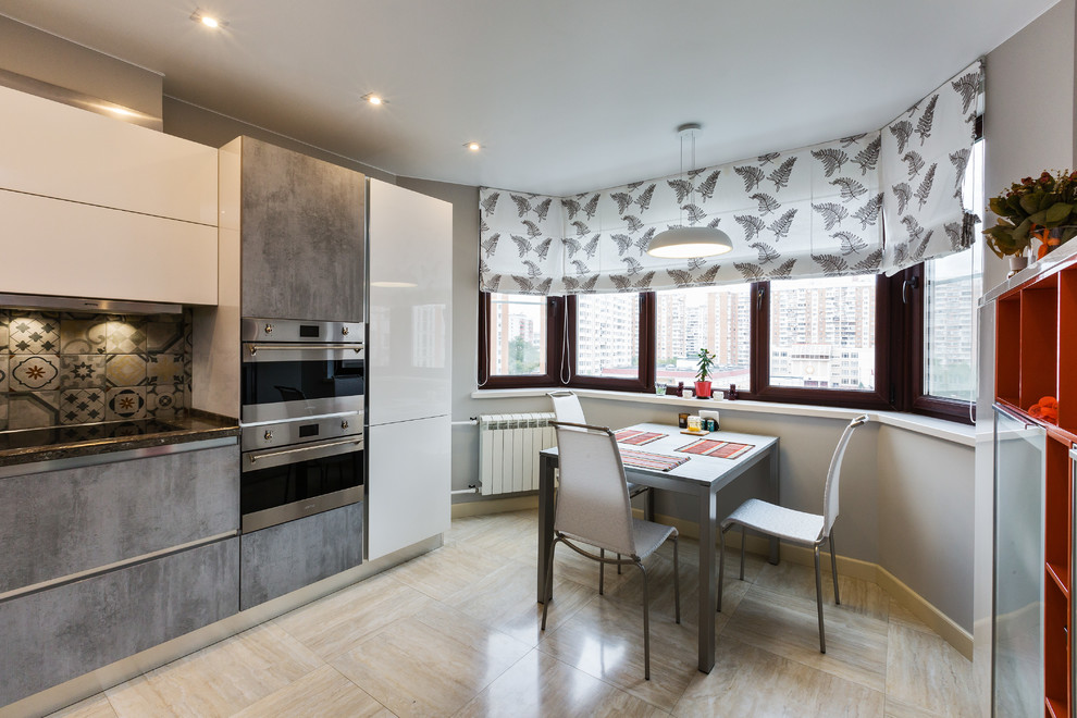 - кухня — люстра над обеденным столом, рабочая зона — точечная подсветка в линию или зигзагом;