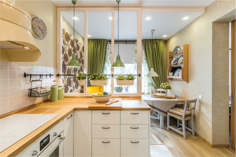 Это отличное решение, если кухня имеет слишком маленькие размеры и невысокий потолок.