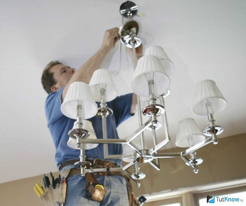Обращаем ваше внимание, что лучше всего доверить эту работу квалифицированным специалистам, но если вы желаете знать, как повесить люстру на натяжной потолок и правильно подключить ее к сети питания самому, то вот отличная инструкция, которая точно с этим поможет: