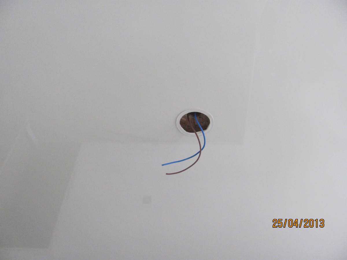 Все это делается до установки натяжного потолка, но уровень его установки (отступ от базового потолка) должен быть известен. Концы электропроводки также необходимо подвести к месту монтажа.