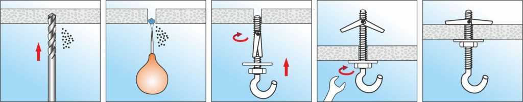 Монтировать светильники можно с помощью крюка, закладного профиля, дюбеля-бабочки, анкеров и т. д. Начинающим мастерам следует изучить нюансы работы при установке приборов разными способами.