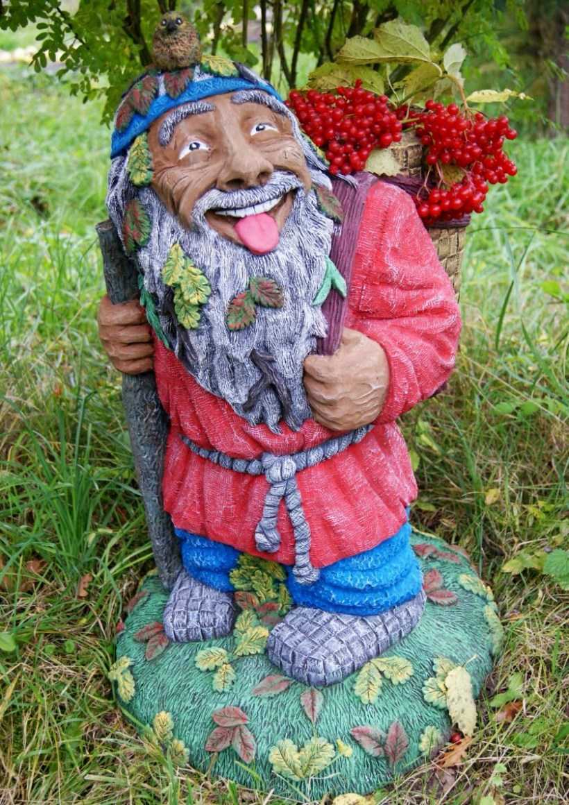 Сказочные персонажи создадут волшебную атмосферу загадочности. При этом на одном участке можно уместить героев из нескольких сказок. Это может быть аппетитный колобок, трудяги-гномики или забавная Царевна-лягушка. Гипсовые изделия можно ярко раскрасить, задекорировать орнаментами и сказочными предметами.