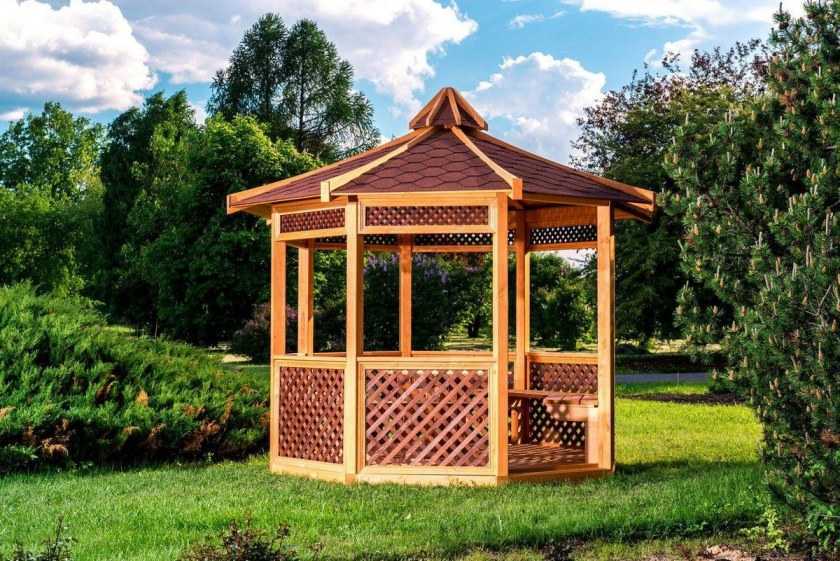 Обычно беседки разрабатываются по центральному плану, круглому или многоугольному, на основе многопостовой конструкции. В углу сада можно поставить угловую беседку. Павильоны имеют форму часовни, ротонды, японской пагоды, а в небольших садах — грибки, поддерживаемые на одной опоре. Беседки могут быть построены без стен, но также закрытыми и застекленными. Такие конструкции на самом деле представляют собой небольшие садовые модели, в которые часто подается электричество. Затем они превращаются в мини-дом, где, например, можно хранить зимой садовую мебель.