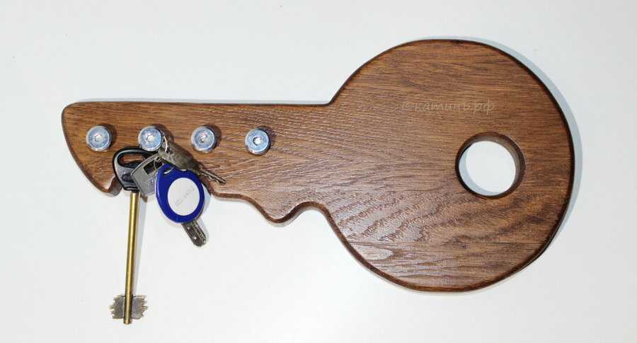 Сделанная своими руками из остатков ламината ключница подойдет для использования в прихожей. Ее выпиливают из цельного куска материала, к стене прикрепляют вместе с крючками, либо на подвесных уголках. Чтобы материал не боялся влаги, торцы ключницы окрашивают или покрывают лаком.