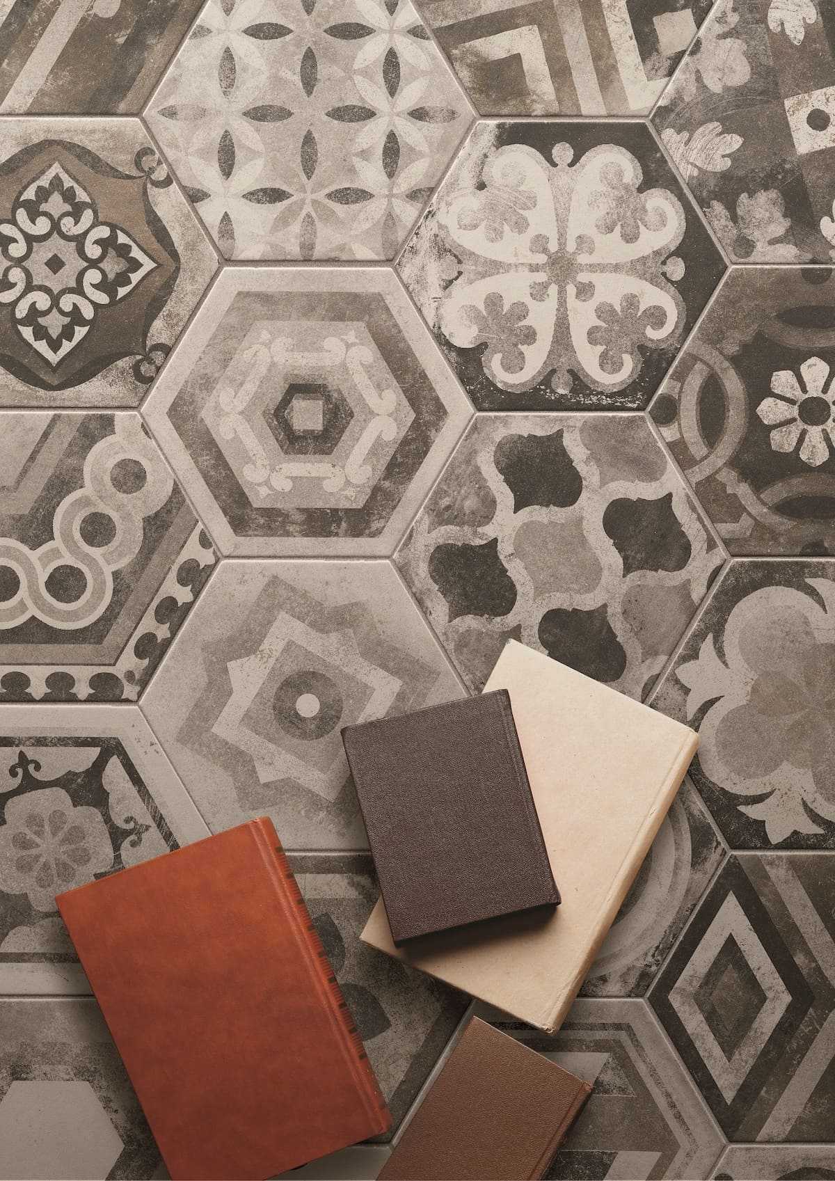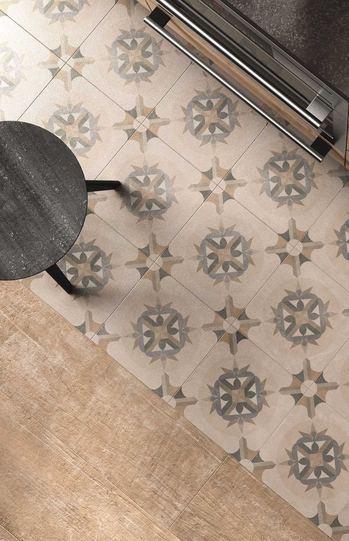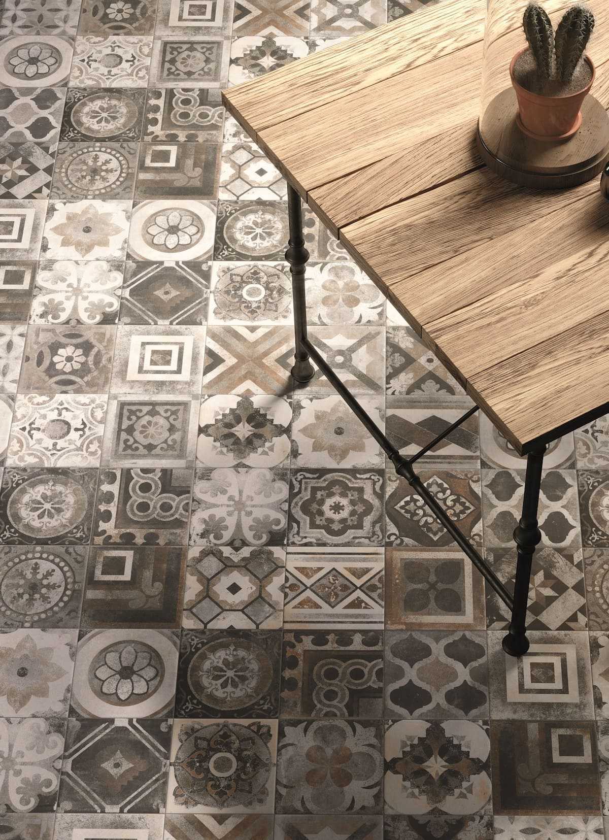 Плитка в деревенском этом стиле несет в себе следы времени. Иногда оригинальный узор хорошо сочетается с необычным форматом, например, 20×60. Выбор этой плитки позволяет остановить время в интерьере, сделать его вневременным.