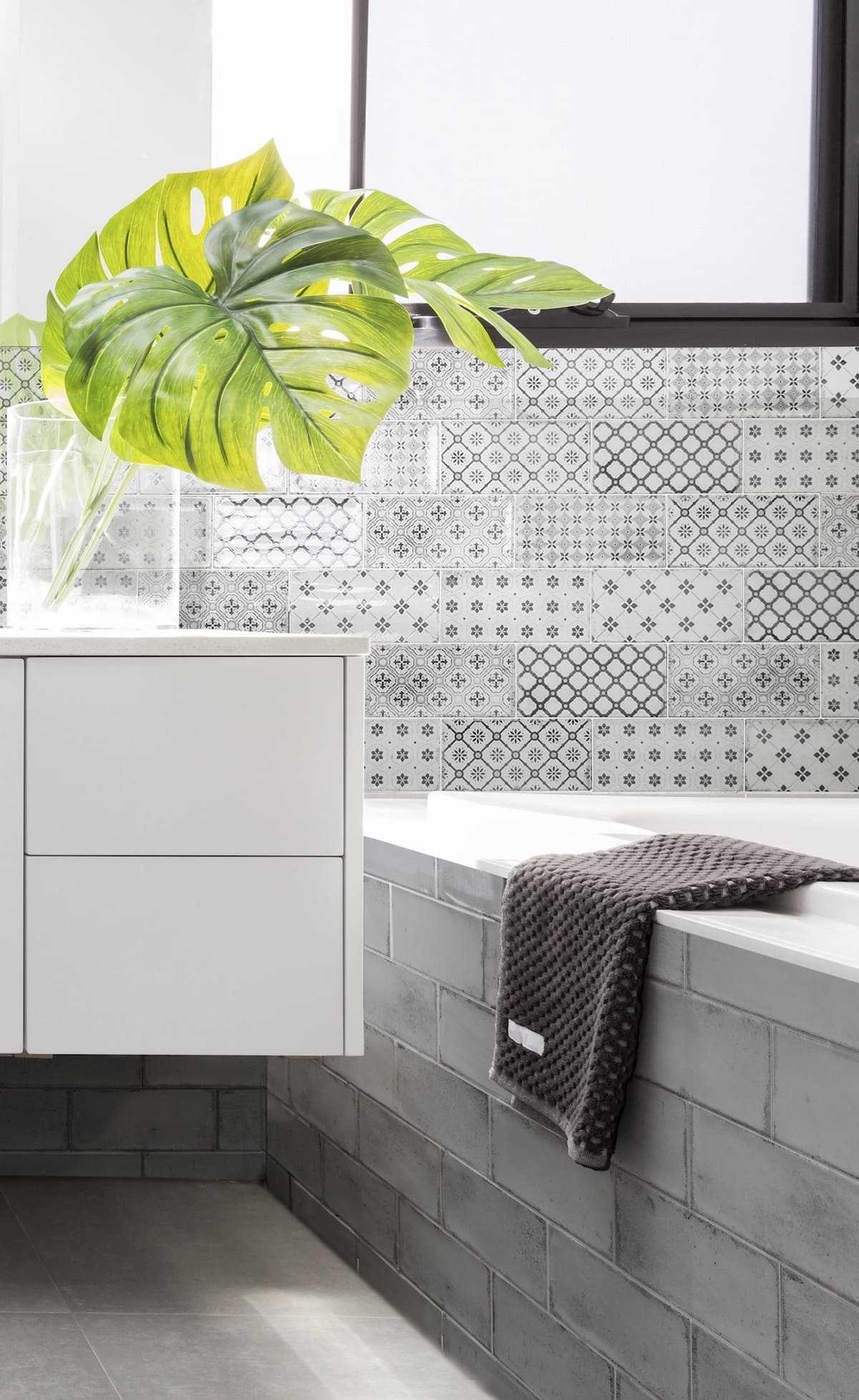 Модная керамическая плитка 2022, имитирующая белый кирпич, очень популярна, и часто становиться основным элементом обустройства ванной комнаты или кухни.
