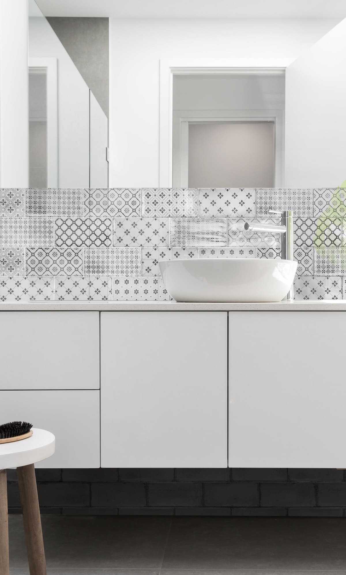 Белый цвет никогда не выходит из моды. Благодаря современному дизайну белый цвет не скучен. Белую плитку можно компановать: например, сочетать матовую с глянцевой. Также работает соединение разных размеров и форм. Смелые могут подобрать цветную затирку, что придаст простой белой плитке индивидуальный вид.