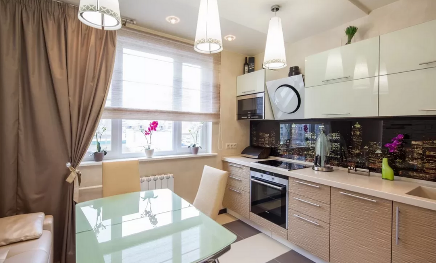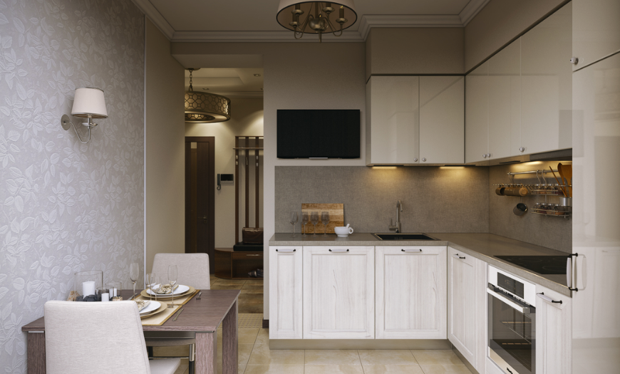 Желательно, чтобы бытовая техника на кухне была встроенной.