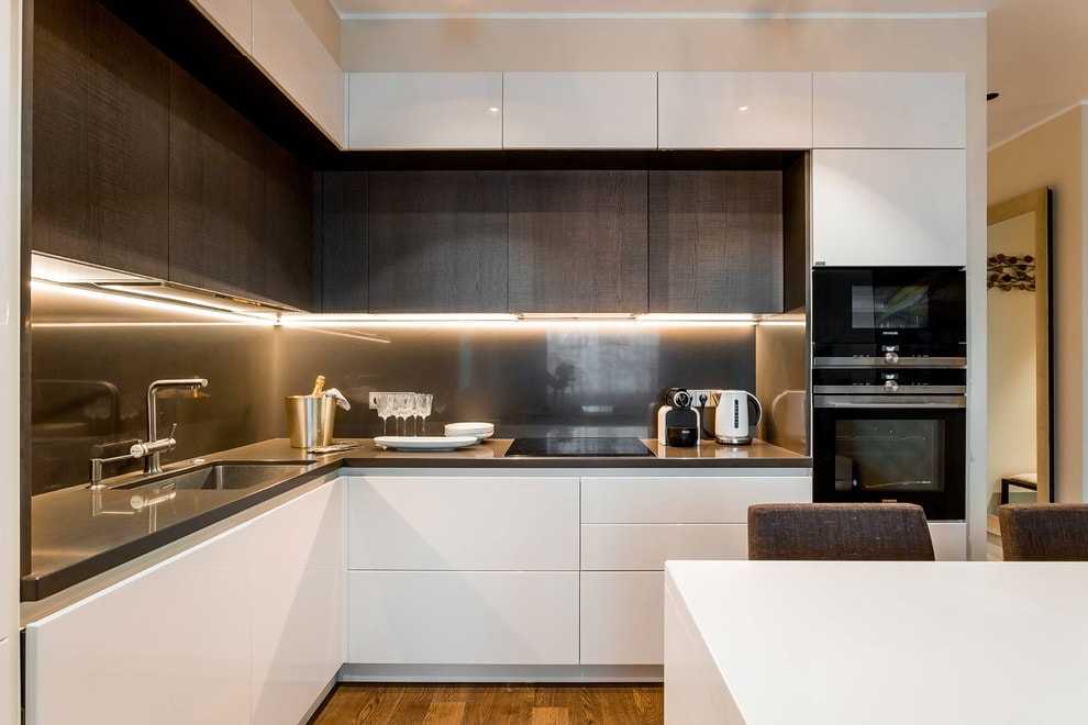 Но главное – дизайн кухни квадратурой 9 метров должен быть светлым и визуально просторным. Фасады гарнитура разрешается делать хоть черными или темно-коричневыми. Но тогда их следует подбирать глянцевые с отблеском, а освещение делать максимально ярким, чтобы свет заглядывал в каждый уголок комнаты