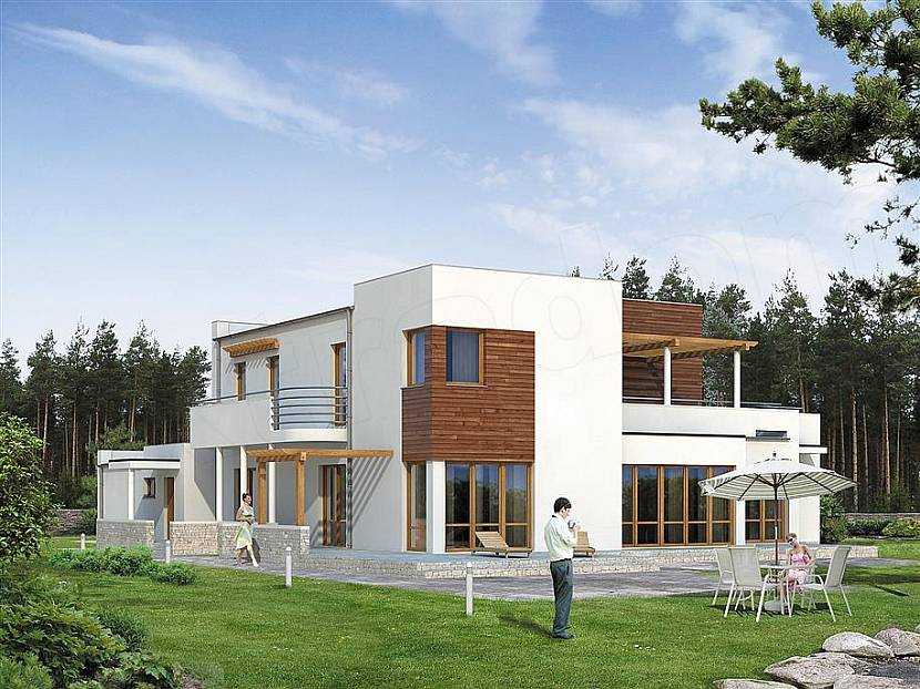 Самым популярным решением, являются двухэтажные дома с плоской кровлей, особенно варианты, в которых сочетаются пристройки разного уровня с различными вариантами отделки. Такой дом выглядит футуристично и лучше всего подходит для отделки в минималистическом стиле. В целом, выбирать подходящий вариант проекта, стоит исходя из имеющегося бюджета и с учетом целей, для которых строится жилье – постоянное или сезонное проживание.