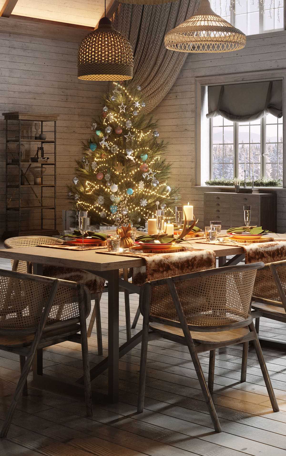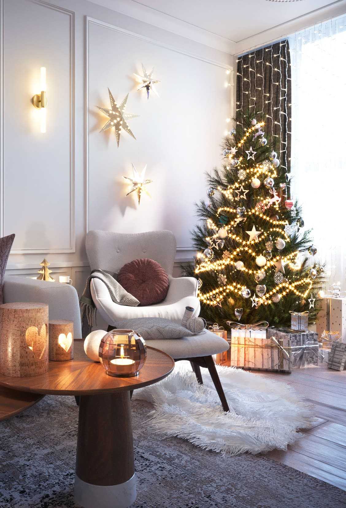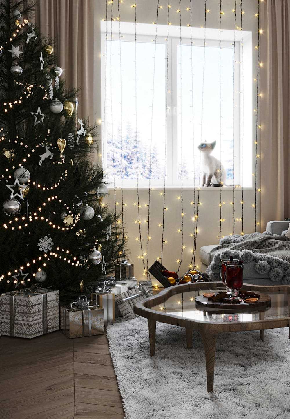 Традиционным элементом новогоднего украшения для дома является рождественская ёлка, украшенная красивыми игрушками и гирляндами. В этом году рекомендуется отказаться от искусственных деревьев (если купить настоящую елку не получается, то можно собрать и украсить букеты из еловых веток). Ведь модный тренд этого года – использовать по возможности все натуральное.