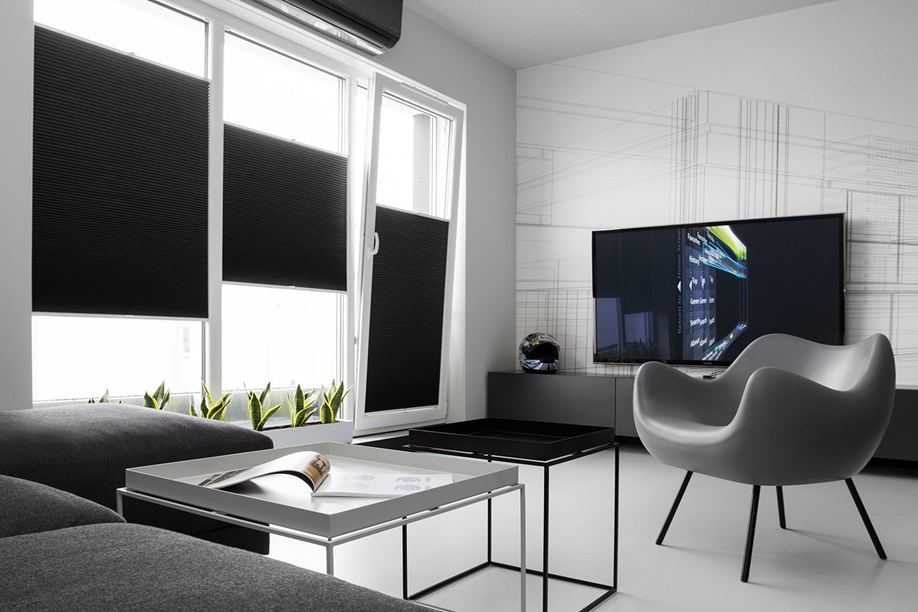 - Черно-белый дизайн интерьера – стильное решение придется по вкусу хозяевам, предпочитающим минимализм. При правильной проработке общего стиля и отдельных элементов комната будет смотреться шикарно.