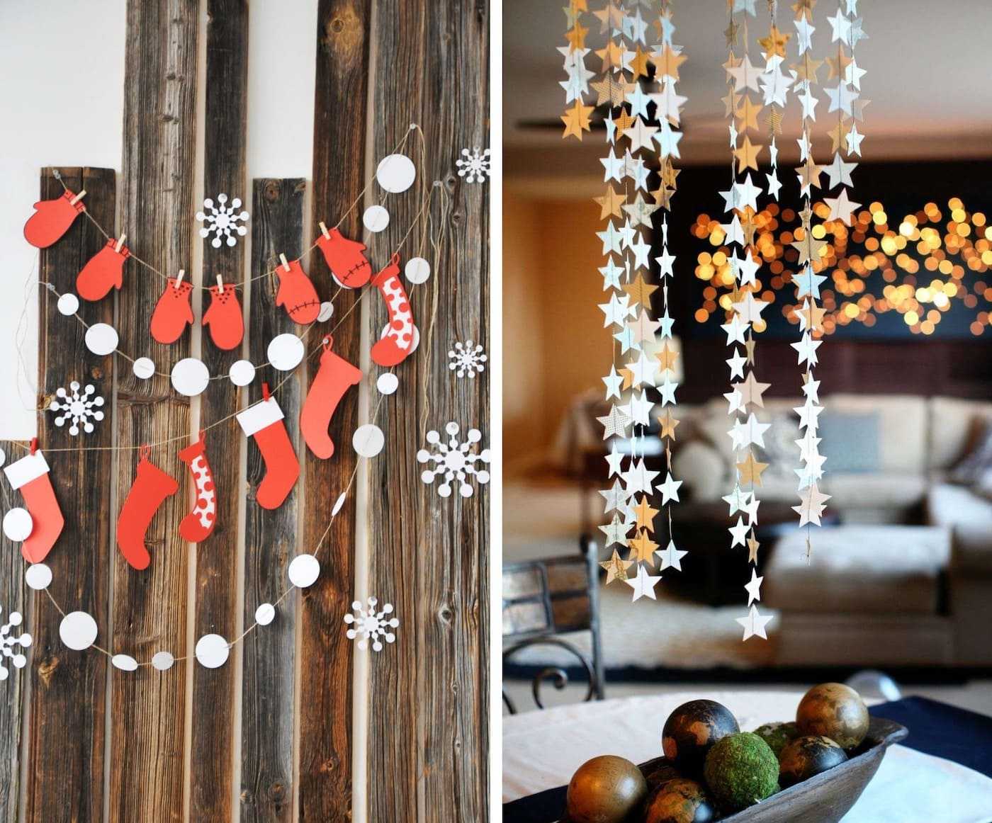 Украшать комнаты можно двумя способами: задекорировать все — окна, двери, стены, потолок или выбрать отдельные «площадки», разместив в них новогодние экспозиции. Сначала рекомендуется составить план. Это даст возможность понять, что потребуется для декора. Что из этого уже есть, а что нужно еще купить или изготовить.