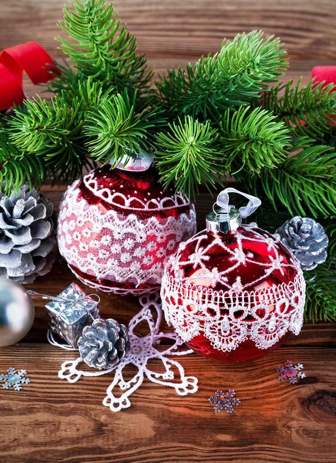 Очень стильно и необычно в качестве новогоднего украшения будут смотреться старые (даже почти старинные) елочные игрушки (бусы, стеклянные шары, сосульки, шишки) и прочий декор, созданный собственноручно. Дети будут довольны, если среди елочных украшений найдется место сладостям.