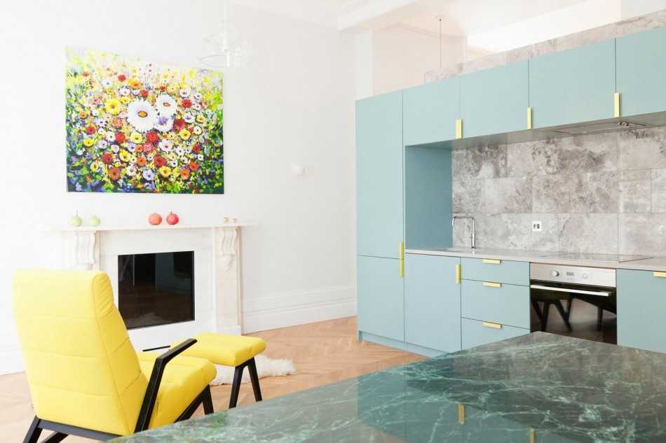 При этом светлые цвета все же должны доминировать. Например, стиль минимализма благосклонен к выбору чистых оттенков. Бирюза, легкий, мятный оттенок отлично смотрится в текстиле, или элементах декора.