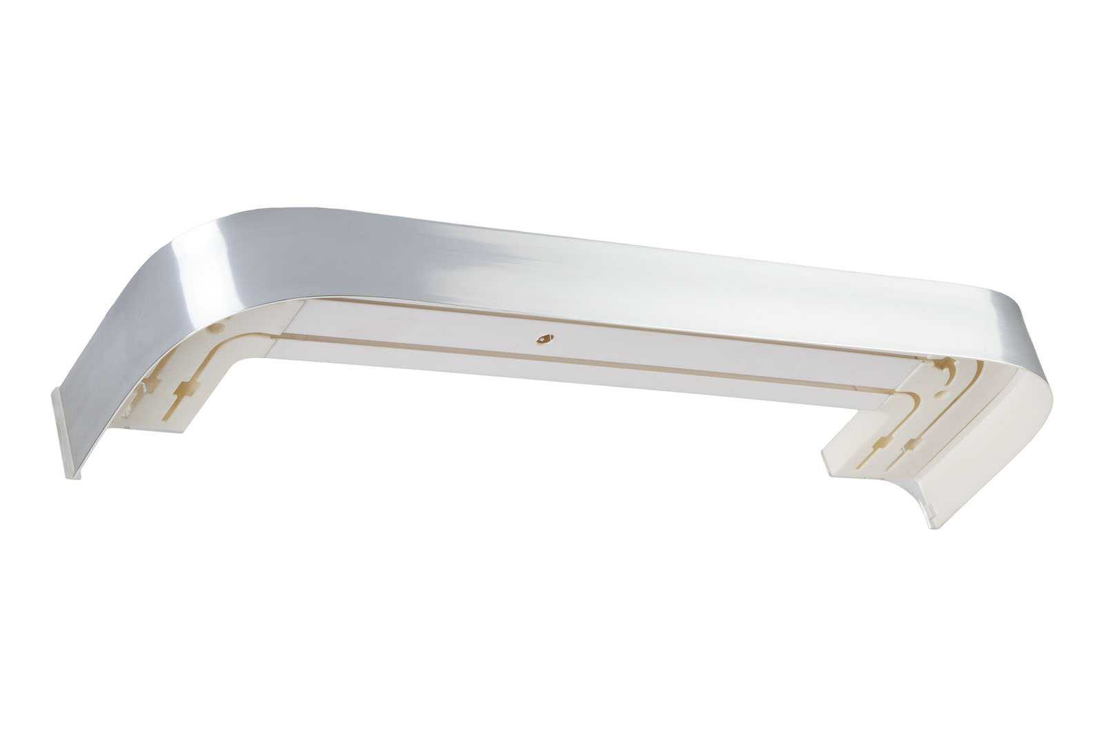Карнизы-шины можно устанавливать с поворотными элементами. По краям карниза устанавливаются специальные заглушки, заглушками круглой формы закрываются места ввертывания шурупов.