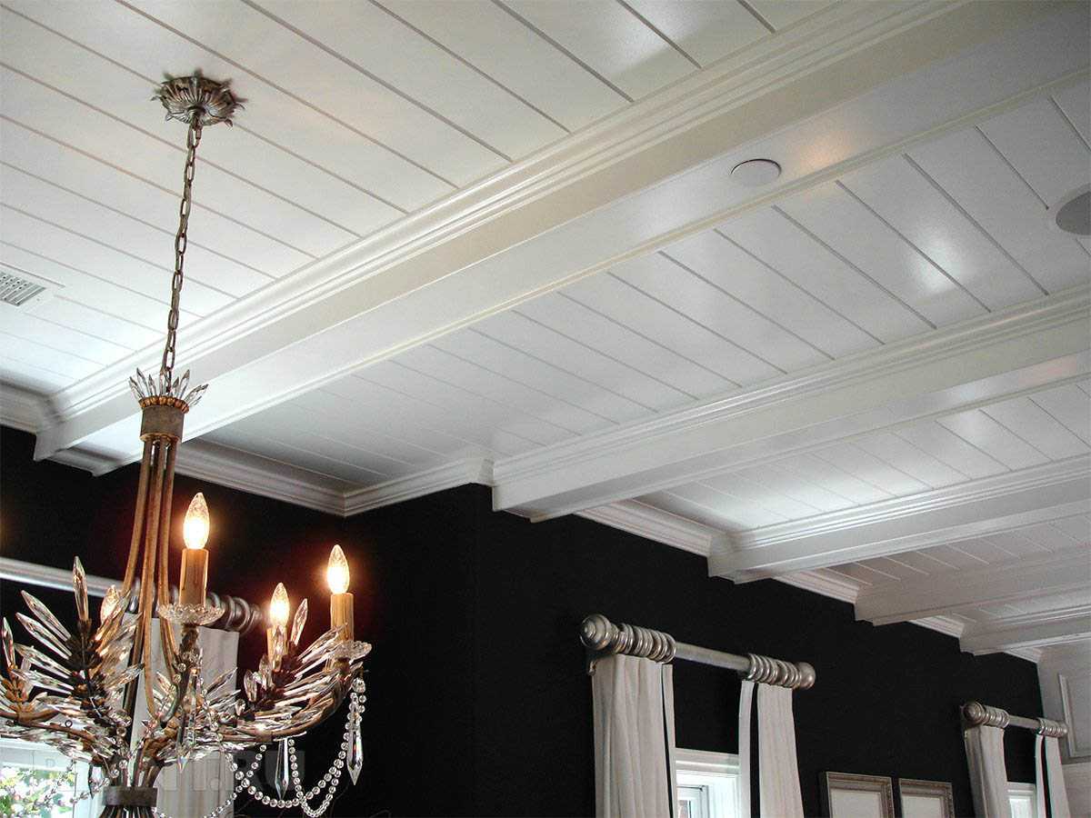 Потолочные балки в качестве интерьерного декора возможны для помещений всех назначений. В частном доме балки представляют собой конструктивные элементы кровель, и сочетаются с подшивкой потолков деревянной вагонкой. Окрасив балки и вагонку в светлые тона, можно создать эффект визуальной высоты помещения, добавить света и простора.