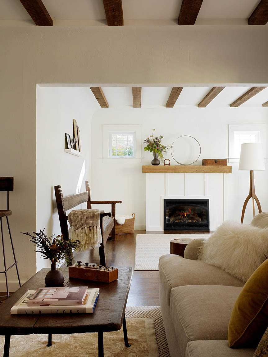 Обращайте внимание на мебель в ваших гостиных: использование декоративных балок в аналогичный тон позволит создать гармоничный цветовой баланс в помещении