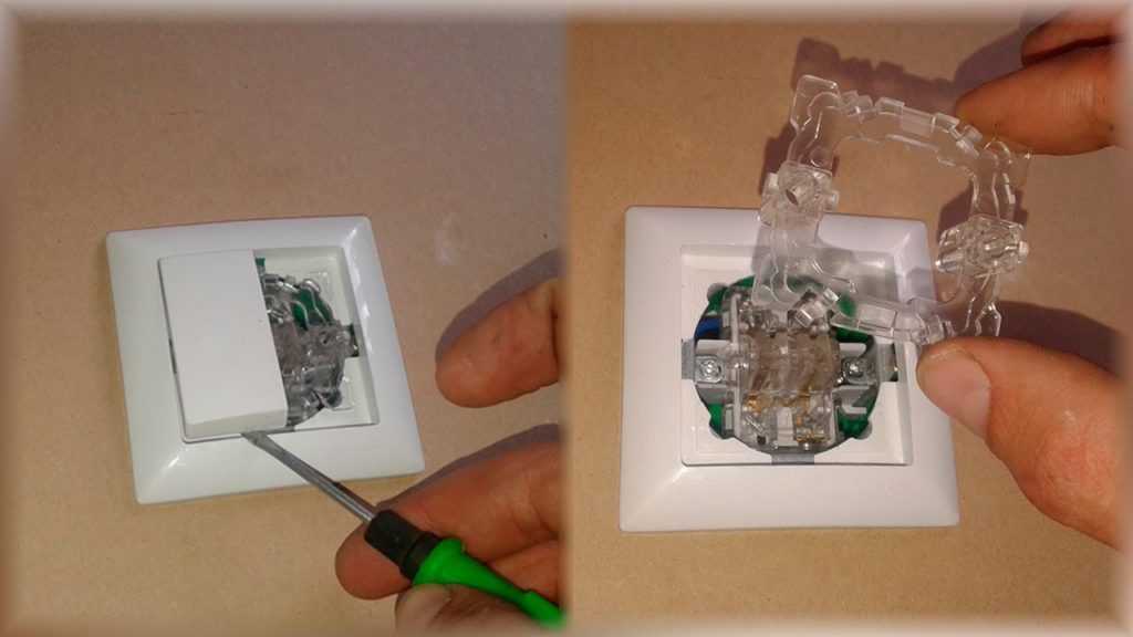 Работы начинают с разборки выключателя. Процедура выполняется ранее описанным способом.