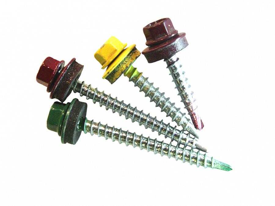 При монтаже кровли из профилированного листа с цветным полимерным декоративно-защитным покрытием рекомендуется использовать крепежные элементы, окрашенные в тот же цвет.