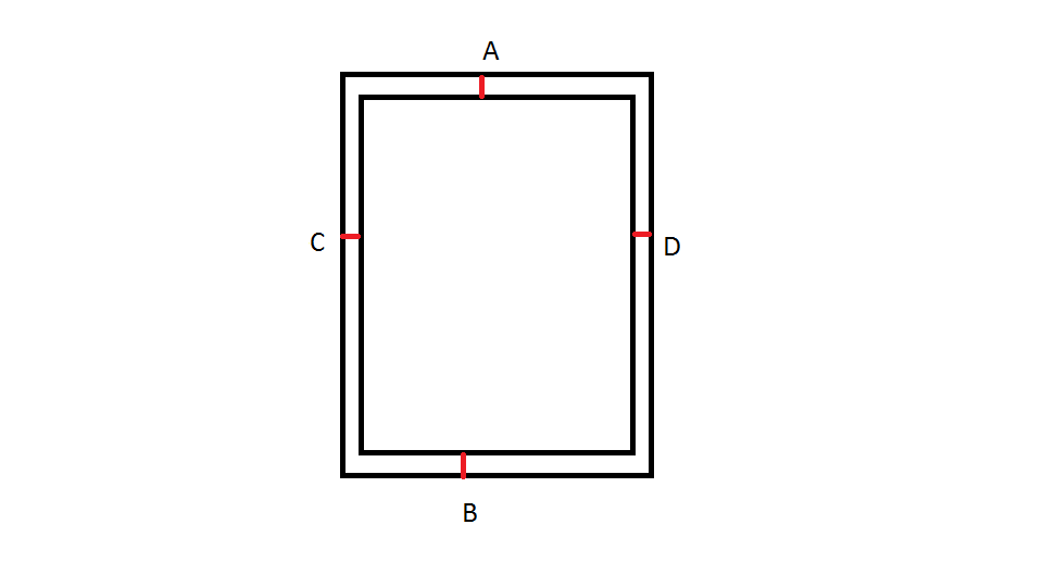Если ширина рам (A,B,C,D на рисунке вид с улицы) снаружи меньше, чем нужно, (но не менее 25 мм), то можно добавить на каждую сторону не по 3, а по 2 см, это допустимо.