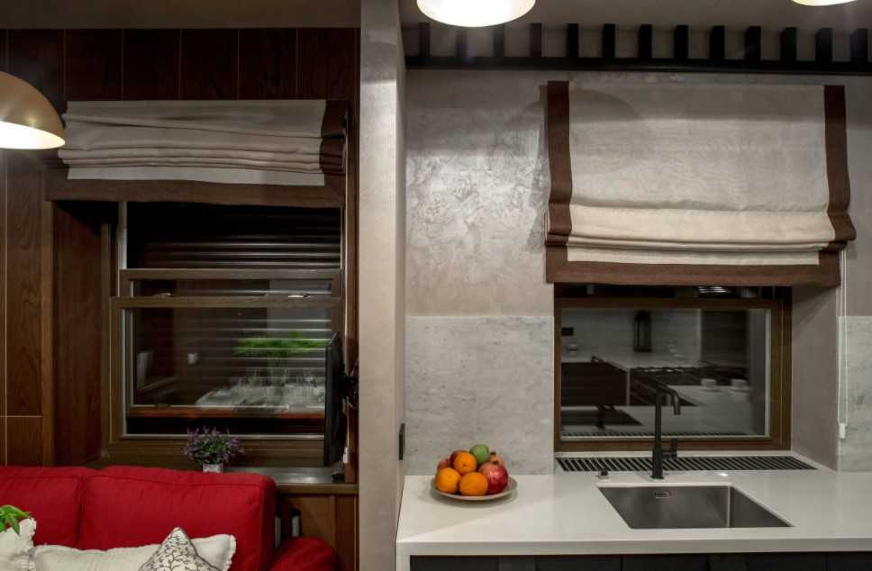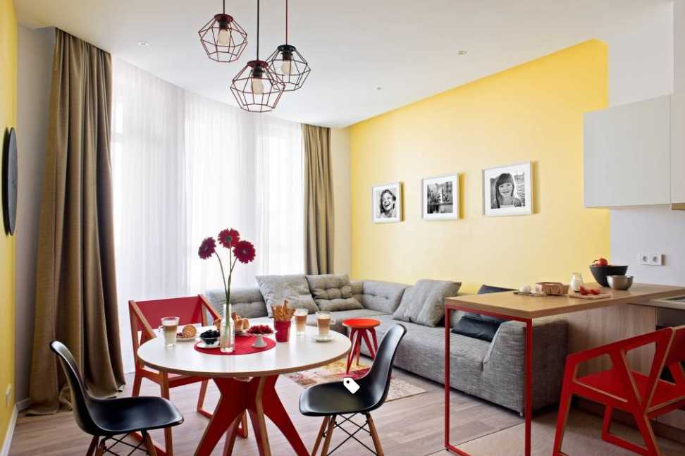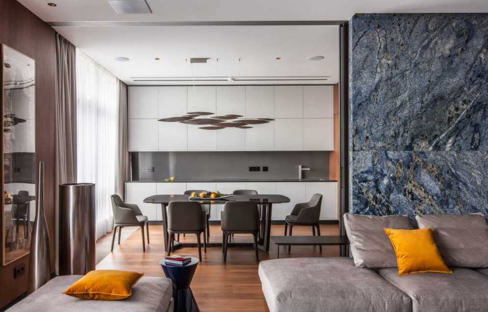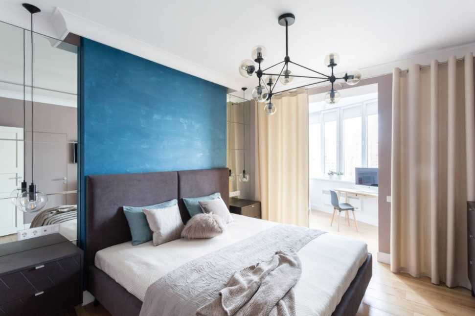 В тренде на 2021-2022 год будет зонирование. Поэтому смело пользуйтесь этой находкой и разделяйте с помощью разного оформления разные зоны одного помещения. Например, зону у окна можно оформить в серой, белой, бордовой цветовой гамме и сделать рабочей, остальное пространство оформить в ультрамариновом, лазурно-синем, бежевом цвете и сделать гостиной.