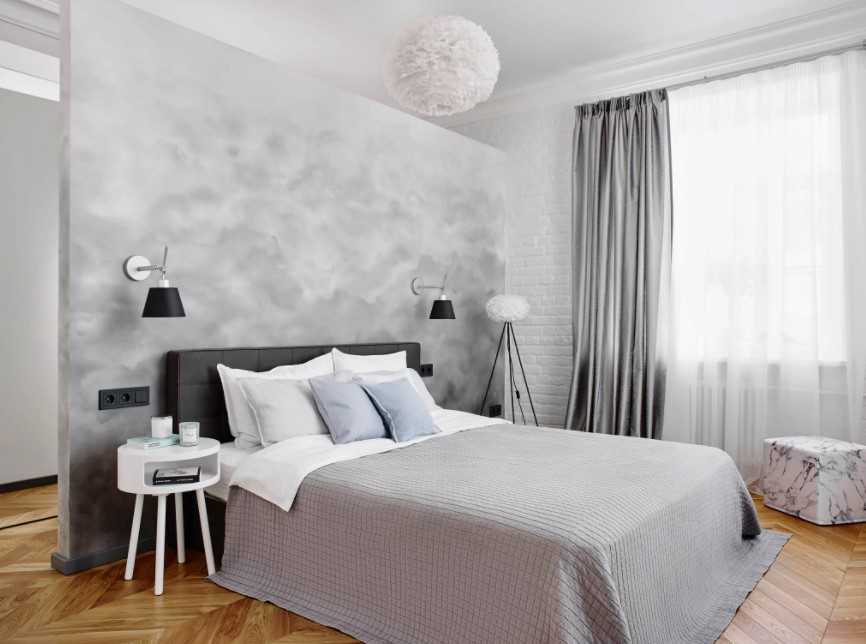 - Сочетание в различной концентрации графита, светло-серого, белого тонов с акцентами из списка ярких цветов. Такой вариант беспроигрышен в любой ситуации. Спокойная атмосфера, создаваемая основным фоном, позволяет снять напряжение и расслабиться.